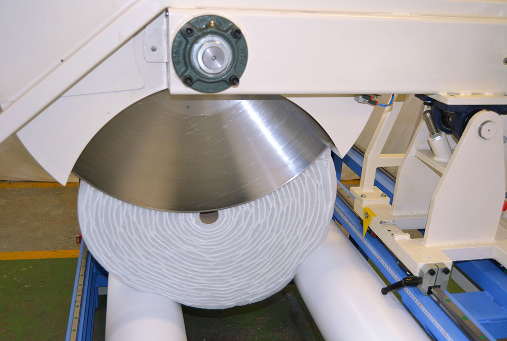- Non-woven roll and blade rotates